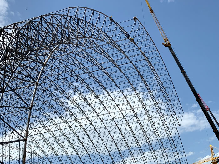 (2)网架加工前应对现场尺寸进行复测,确认无误后方可进行加工、安装;网架制作、运输、安装应遵守《空间网格结构技术规程》JGJ7-2010、《钢网架石景山螺栓球节点》JG/T 10-2009、《钢网架石景山螺栓球节点用高强度螺栓》 GB/T 16939-2016、《石景山钢结构石景山工程石景山施工规范》 GB50755-2012、《石景山钢结构石景山工程石景山施工质量验收标准》 GB50205-2020。